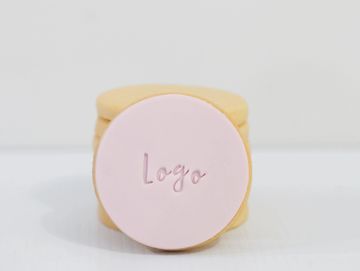 3.5cm round fondant iced cookie with your logo. Minimum order of 100
