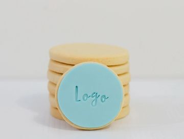 5cm round fondant iced cookie with your logo. Minimum order of 100