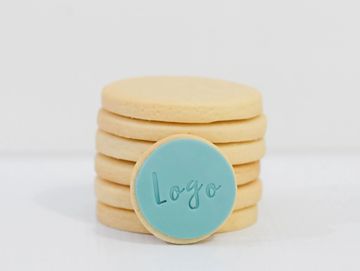 6cm round fondant iced cookie with your logo. Minimum order of 100